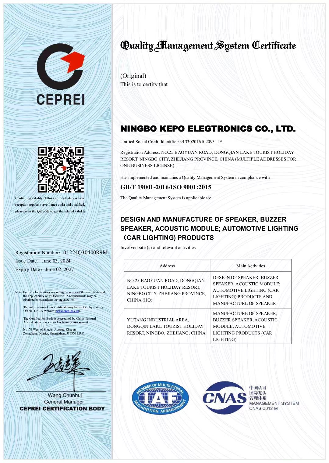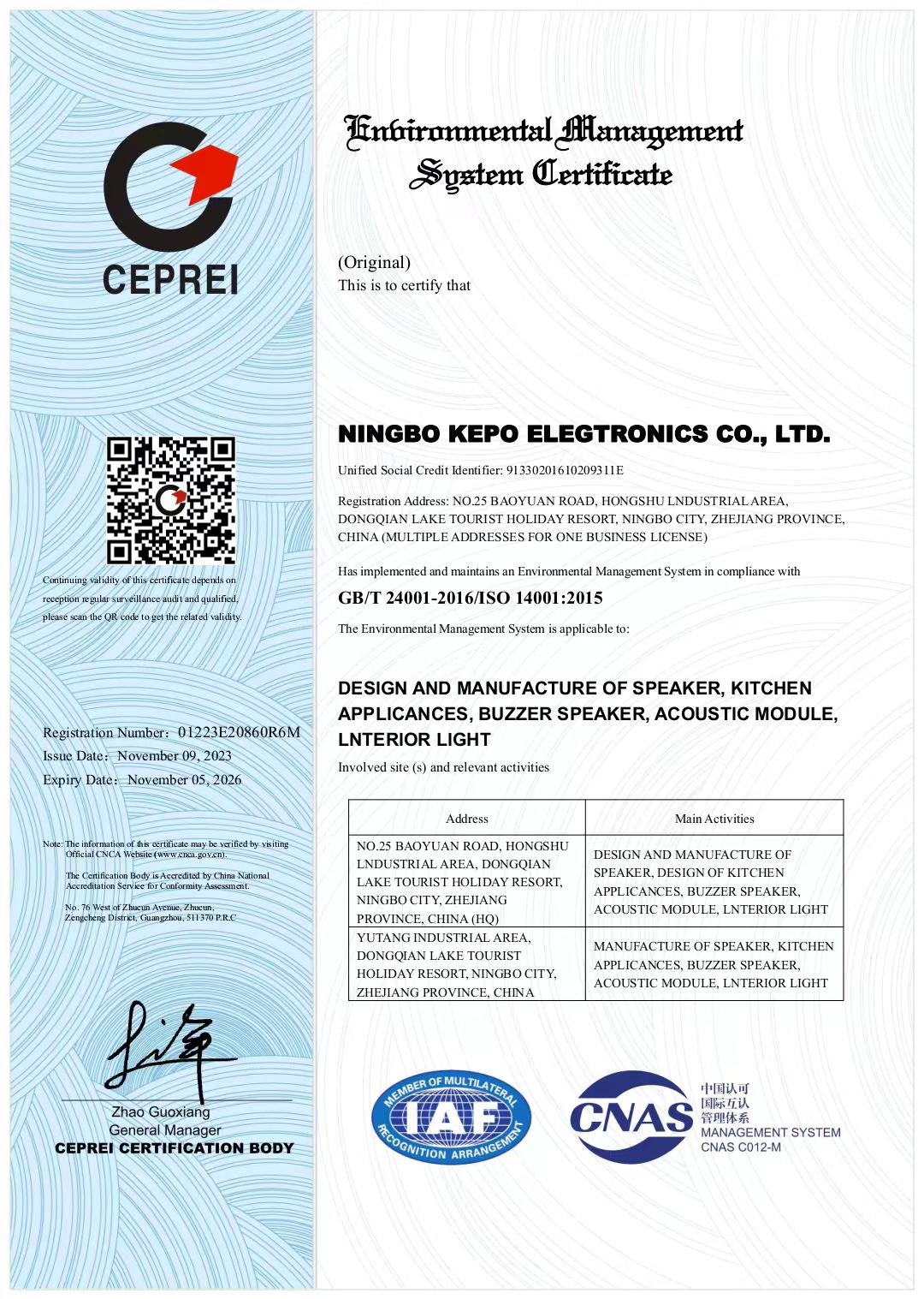 KEPO owns 3 plants, located in Yutang Industrial Zone (main plant), Hongshu Industrial Zone and Gaoqian Industrial Zone respectively with about 30000 ㎡ total plant area and more than 600 employees.