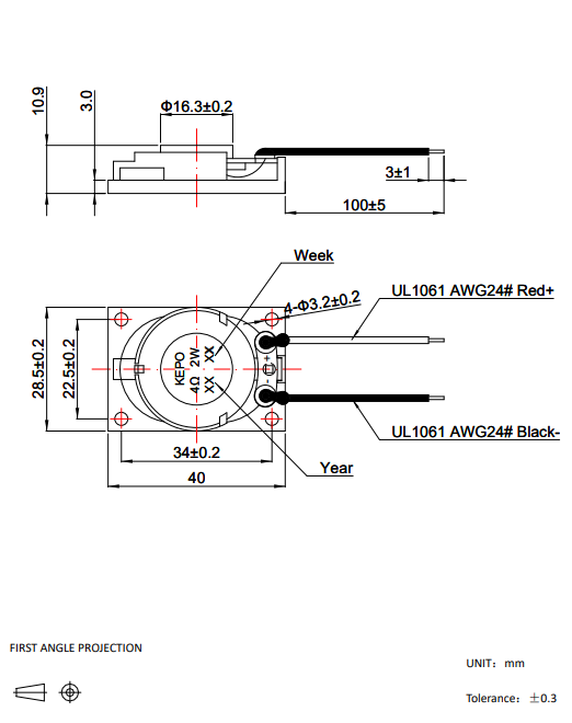 Resonant Fr. (fo): 450Hz±20% (at 1V)